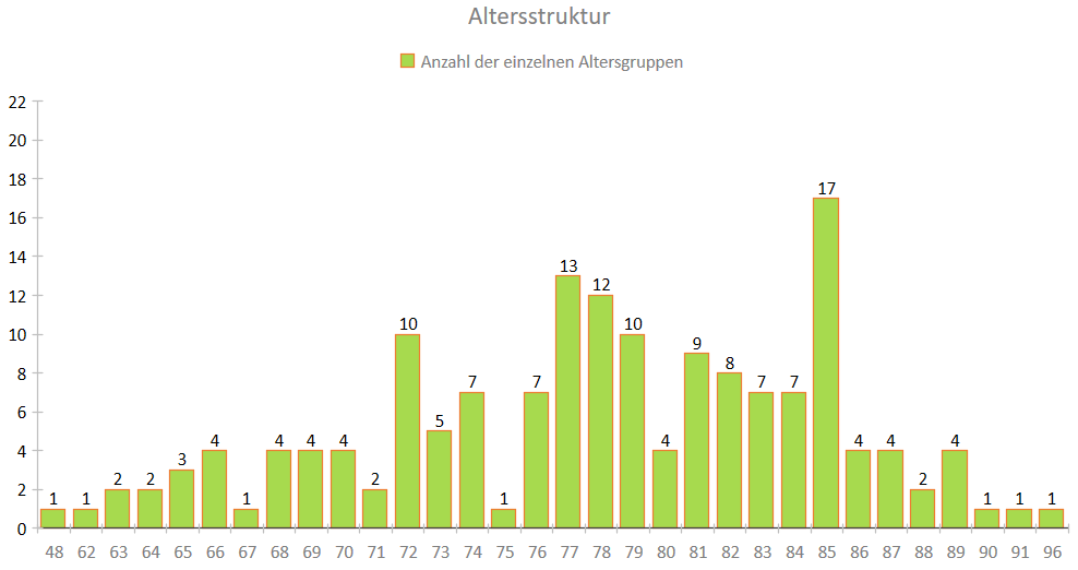 Aktuelle Altersstrukur Oktober 2024: Mitglieder zwischen 59 und 95 Jahren
